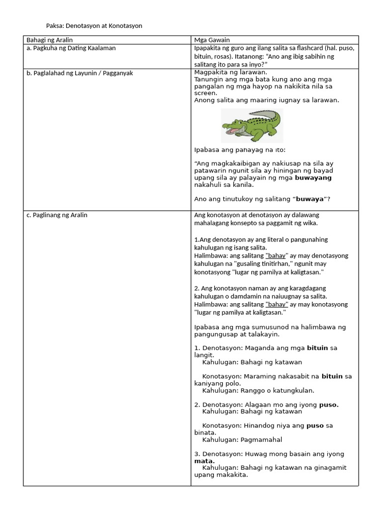c. Paglinang ng Aralin Ang konotasyon at denotasyon ay dalawang