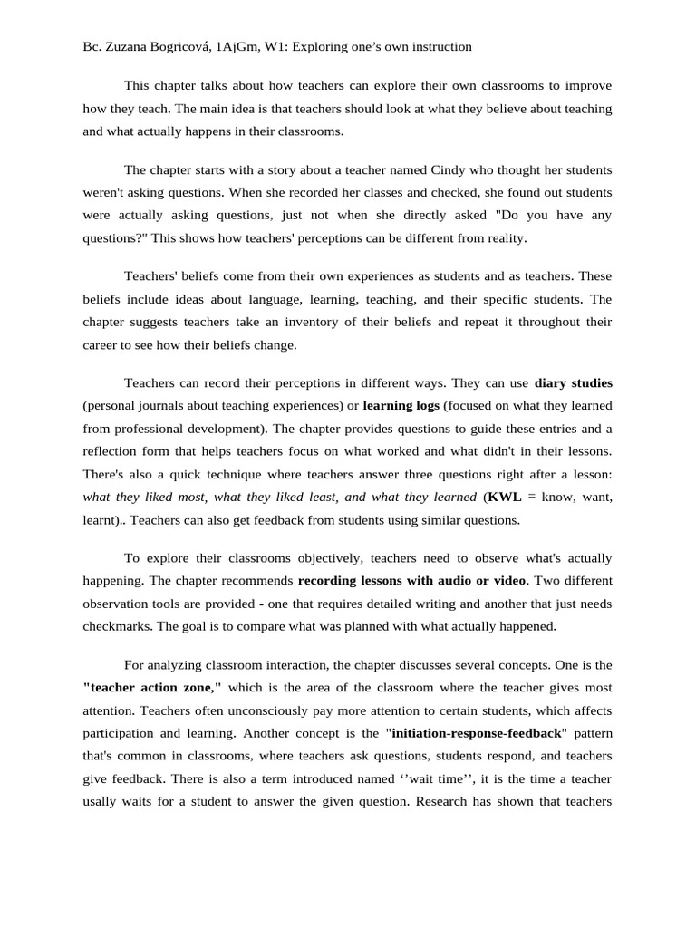 Bc. Zuzana Bogricová, 1AjGm, W1: Exploring one’s own instruction