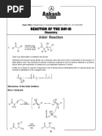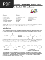 Note: It may be necessary to warm these mixtures to dissolve the solids. If this is necessary, then the solutions should be cooled to room temperature before proceeding with the next step. 3. Combine the contents of the two flasks by adding the aldehyde/acetone mixture to the alkaline (NaOH) solution. After the addition, swirl the mixture for several minutes and allow the reaction to proceed for 1.5 hours. Swirl the mixture every 10 to 15 minutes during this period. (You should follow the course of the reaction by TLC. What solvent would be useful in separating the reactant from product?) When the reaction is complete, place the flask in an ice bath for 3 to 5 minutes. Add 25 mL of ice cold water to the mixture and cool it for about 5 minutes. The precipitate should be broken into small pieces with a stirring rod. Collect the product on a small Buchner funnel and wash it with four 25-mL portions of water. Recrystallize the compound from a minimum amount of hot 95% ethanol in the usual way. Allow the solid to dry completely and weigh the compound.