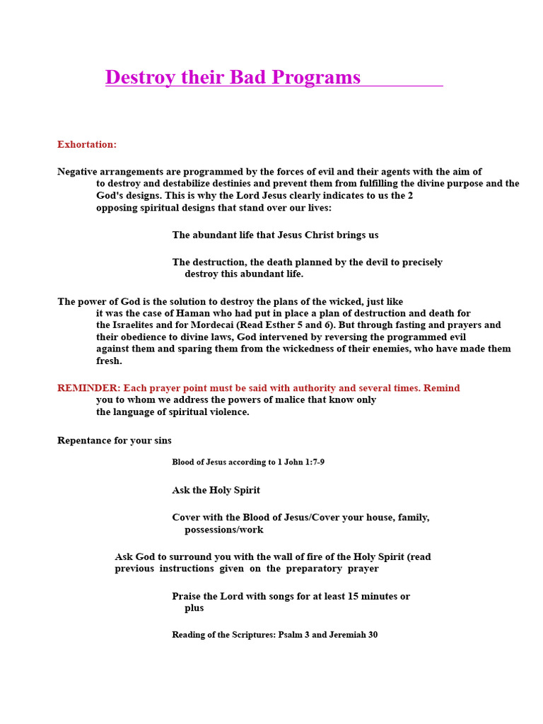 REMINDER: Each prayer point must be said with authority and several times. Remind