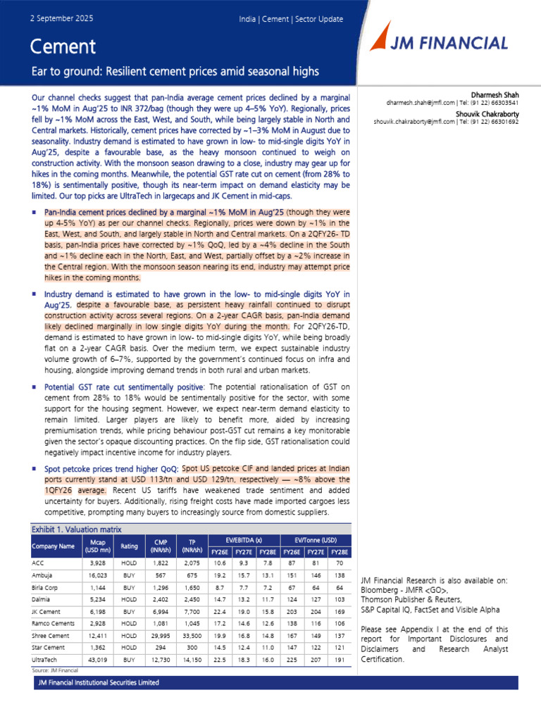 hikes in the coming months. Meanwhile, the potential GST rate cut on cement (from 28% to