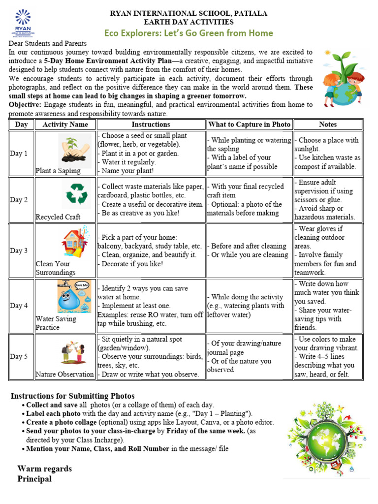 Objective: Engage students in fun, meaningful, and practical environmental activities from home to