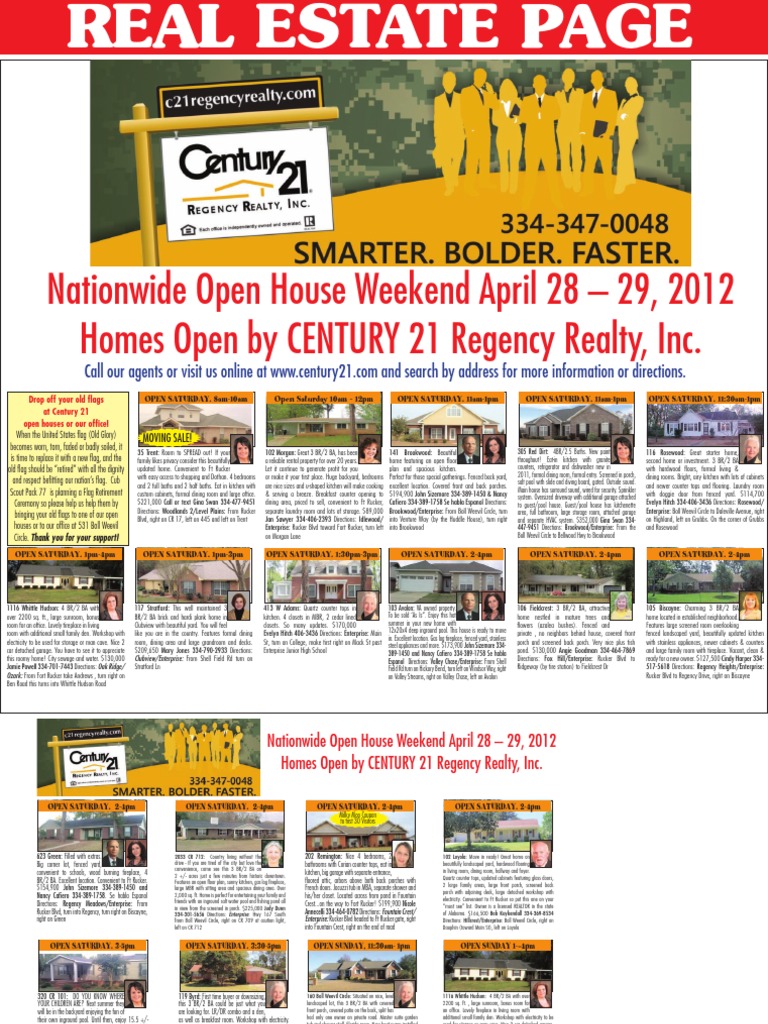 Nationwide Open House Weekend April 28 – 29, 2012 Homes Open by CENTURY 21 Regency Realty, Inc