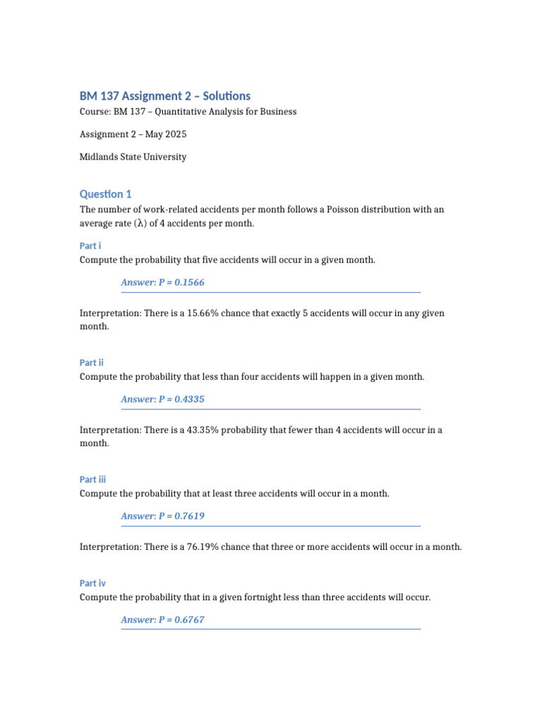 Interpretation: There is an 18.39% probability that exactly two accidents will occur in a