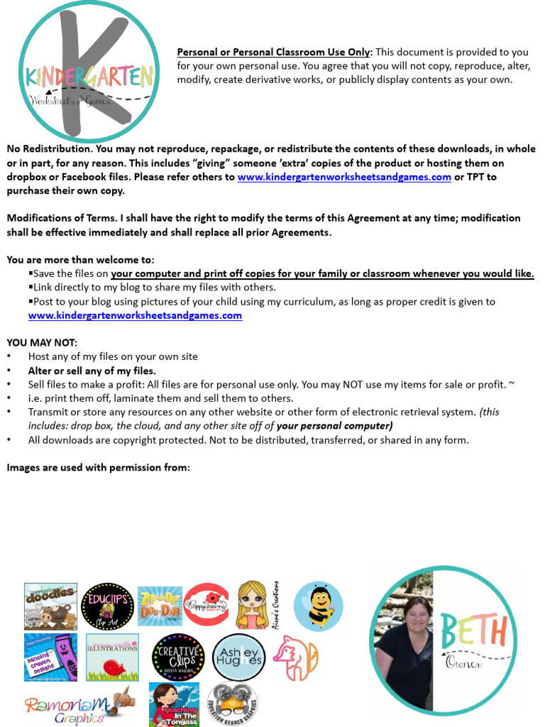 dropbox or Facebook files. Please refer others to www.kindergartenworksheetsandgames.com or TPT to