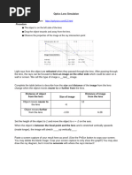 observations from the simulation support the thin lens equation (1/f=1/do+1/di) and