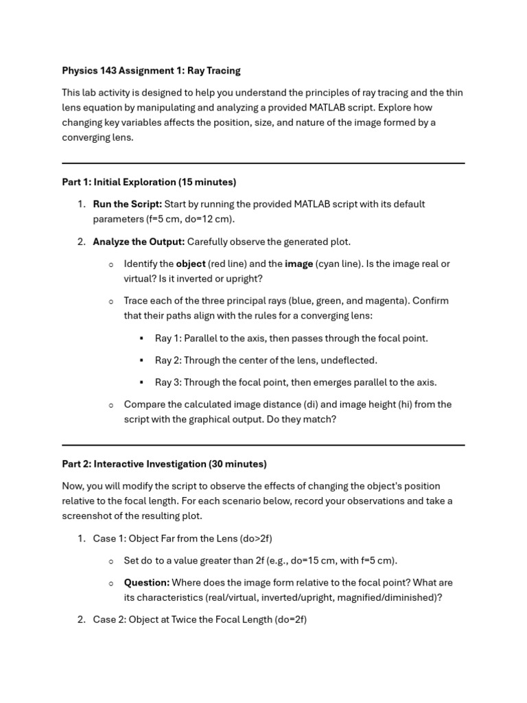 This lab activity is designed to help you understand the principles of ray tracing and the thin