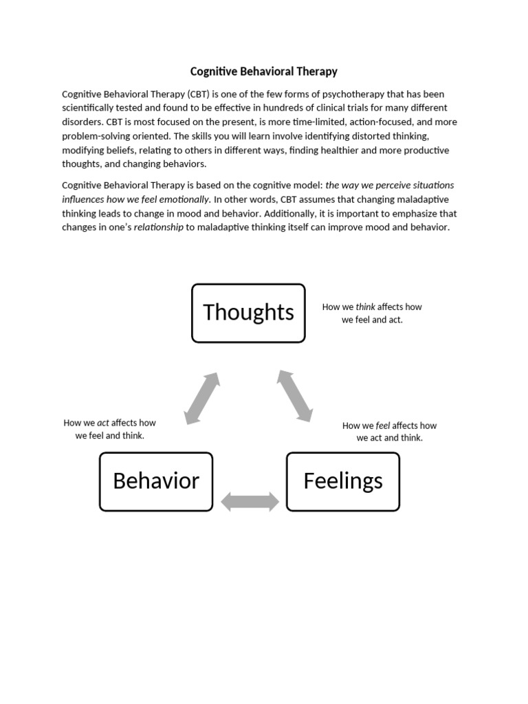 Cognitive Behavioral Therapy (CBT) is one of the few forms of psychotherapy that has been