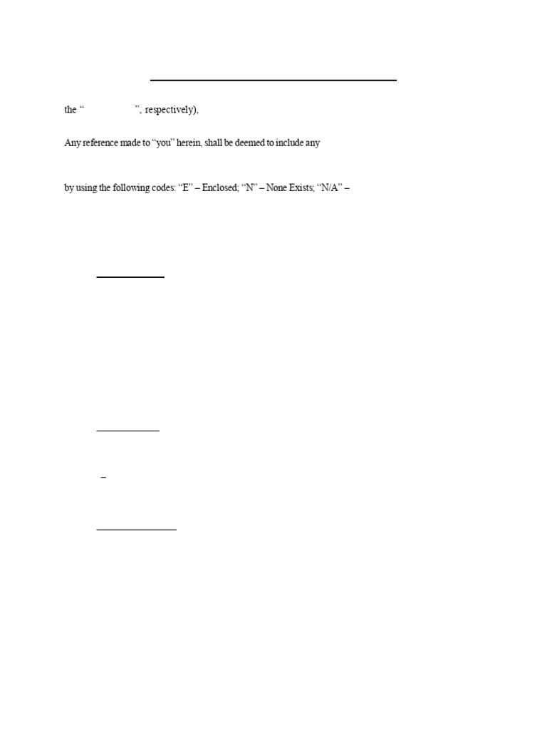 by using the following codes: “E” – Enclosed; “N” – None Exists; “N/A” – Not Applicable. If the questions so