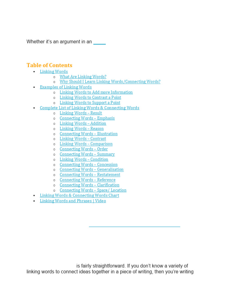 linking words to connect ideas together in a piece of writing, then you’re writing