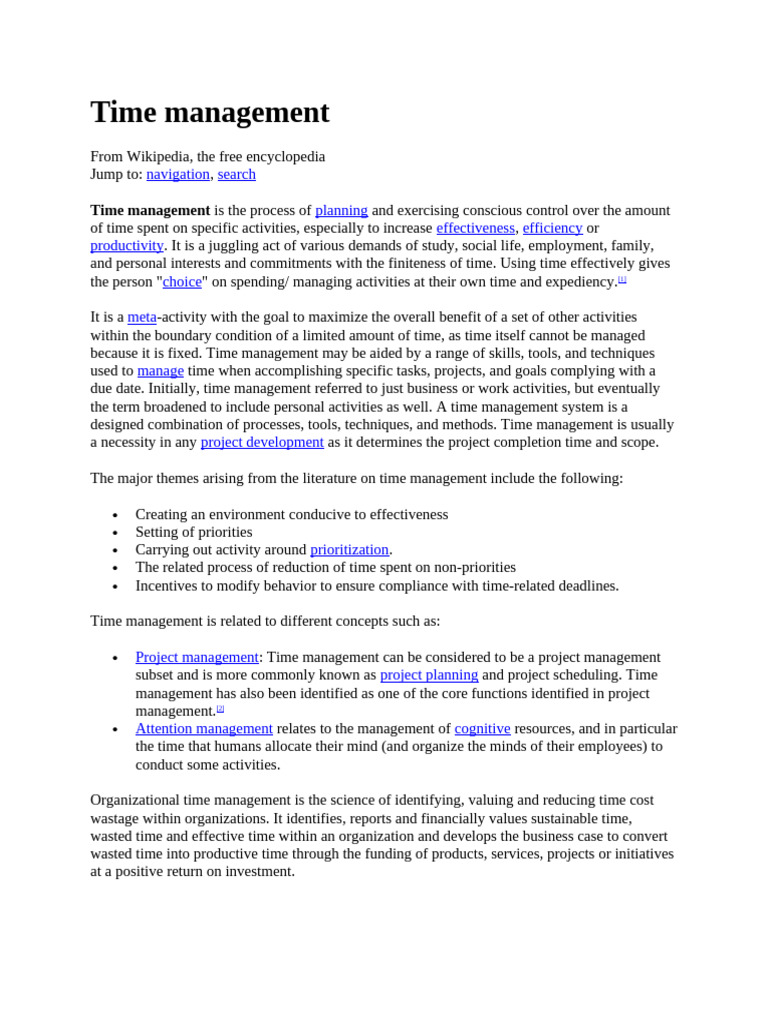 due date. Initially, time management referred to just business or work activities, but eventually