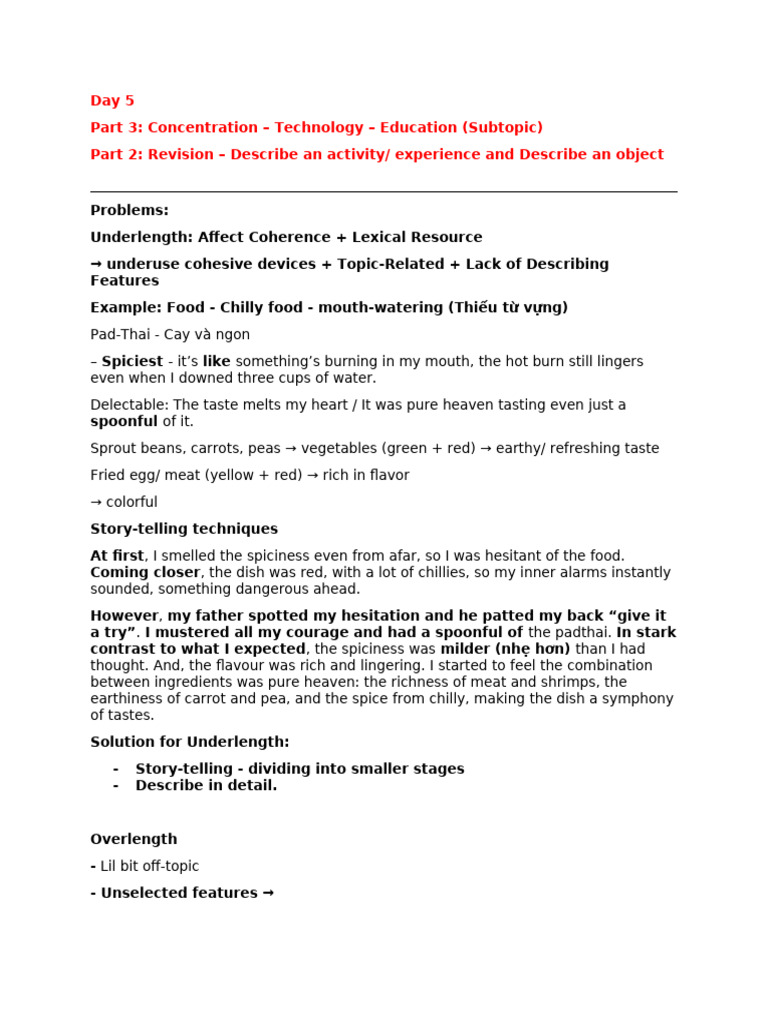 Part 2: Revision – Describe an activity/ experience and Describe an object