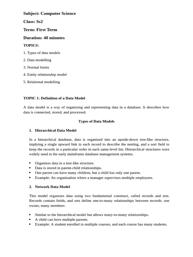 TOPIC 1: Definition of a Data Model