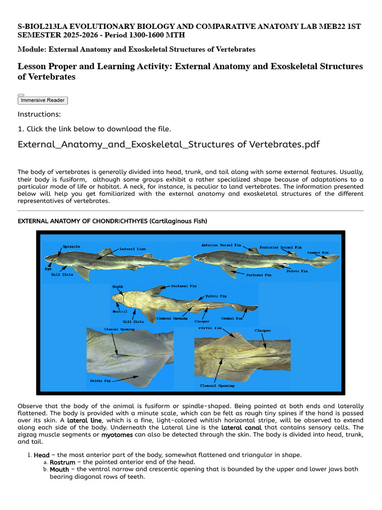 Module: External Anatomy and Exoskeletal Structures of Vertebrates