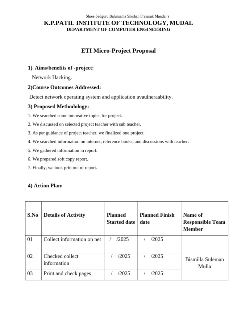 S.No Details of Activity Planned Planned Finish Name of