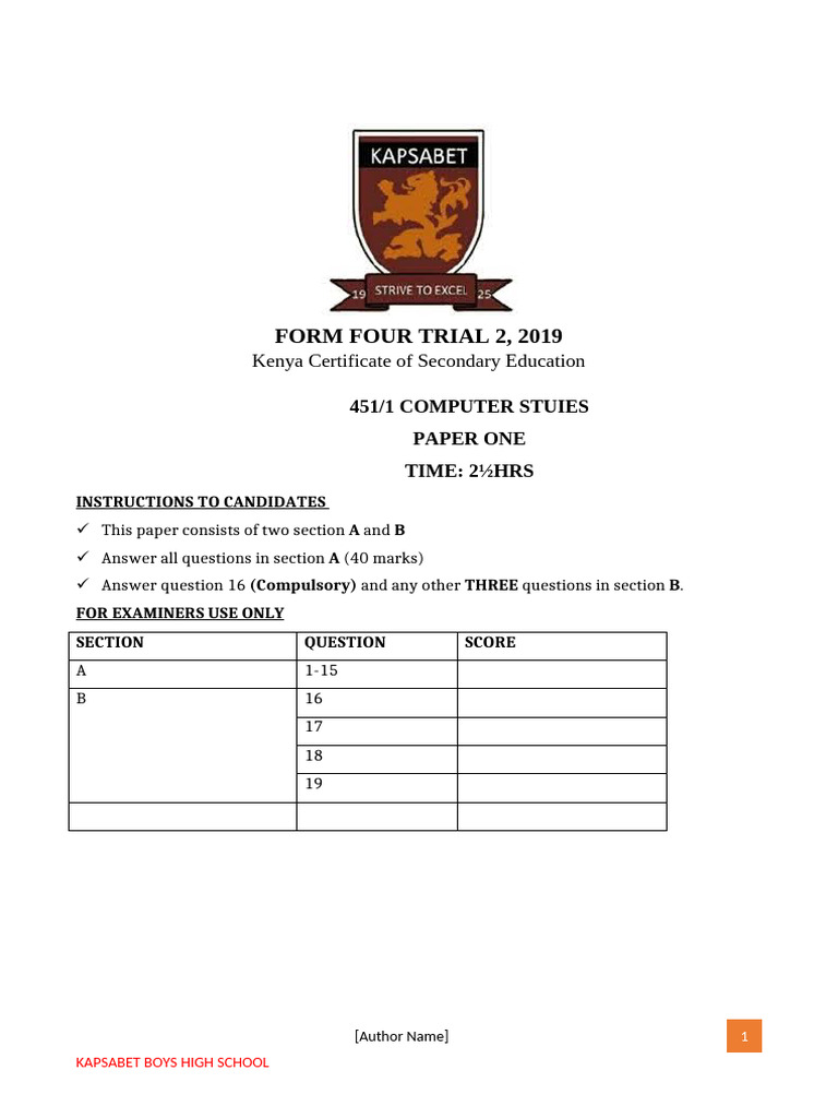 FORM FOUR TRIAL 2, 2019