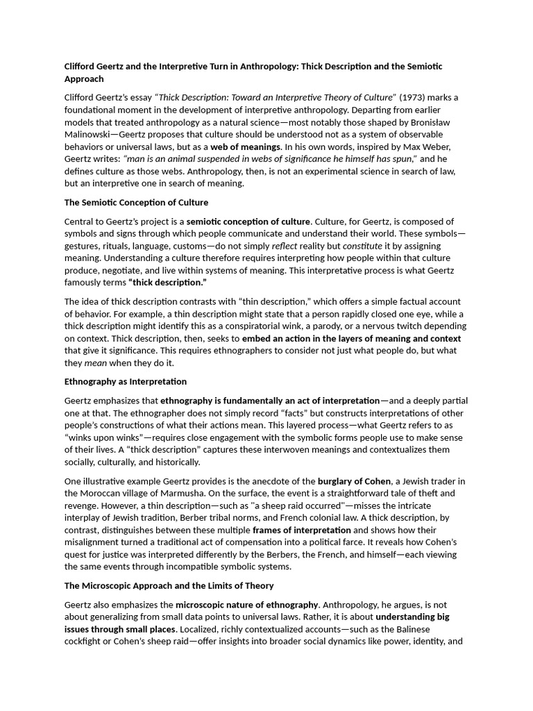 Clifford Geertz and the Interpretive Turn in Anthropology: Thick Description and the Semiotic
