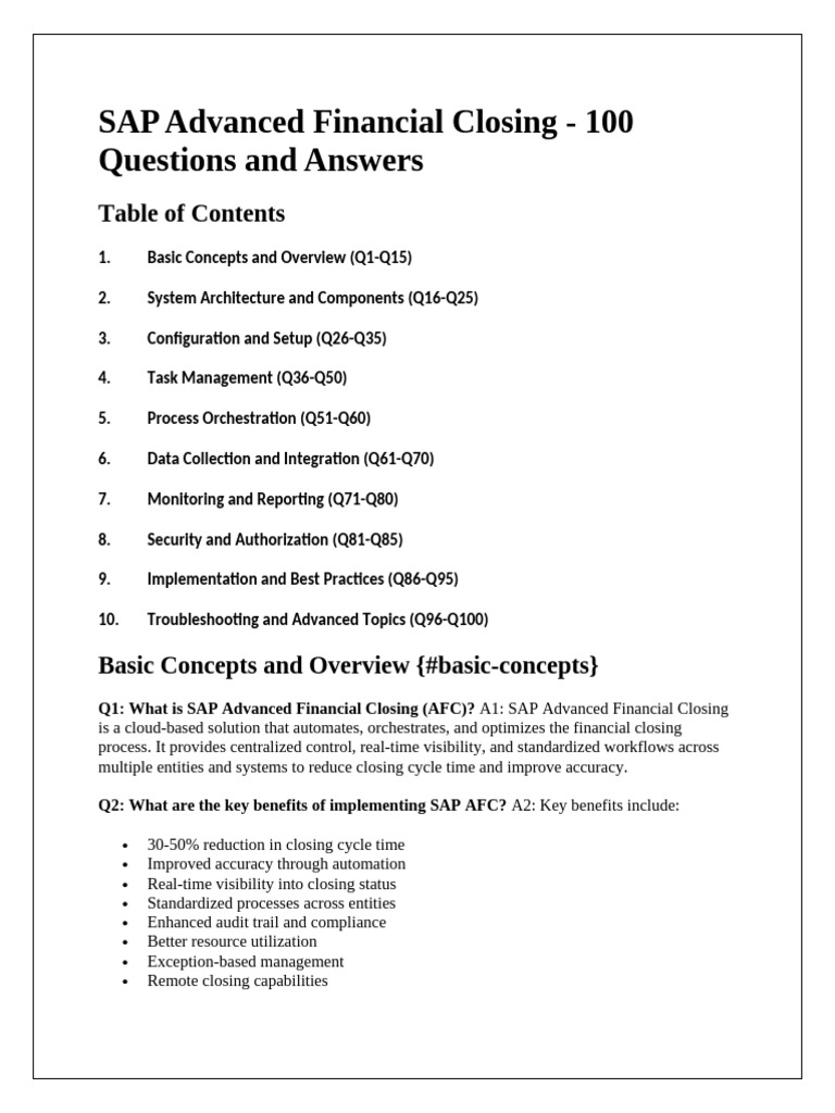 Q1: What is SAP Advanced Financial Closing (AFC)? A1: SAP Advanced Financial Closing