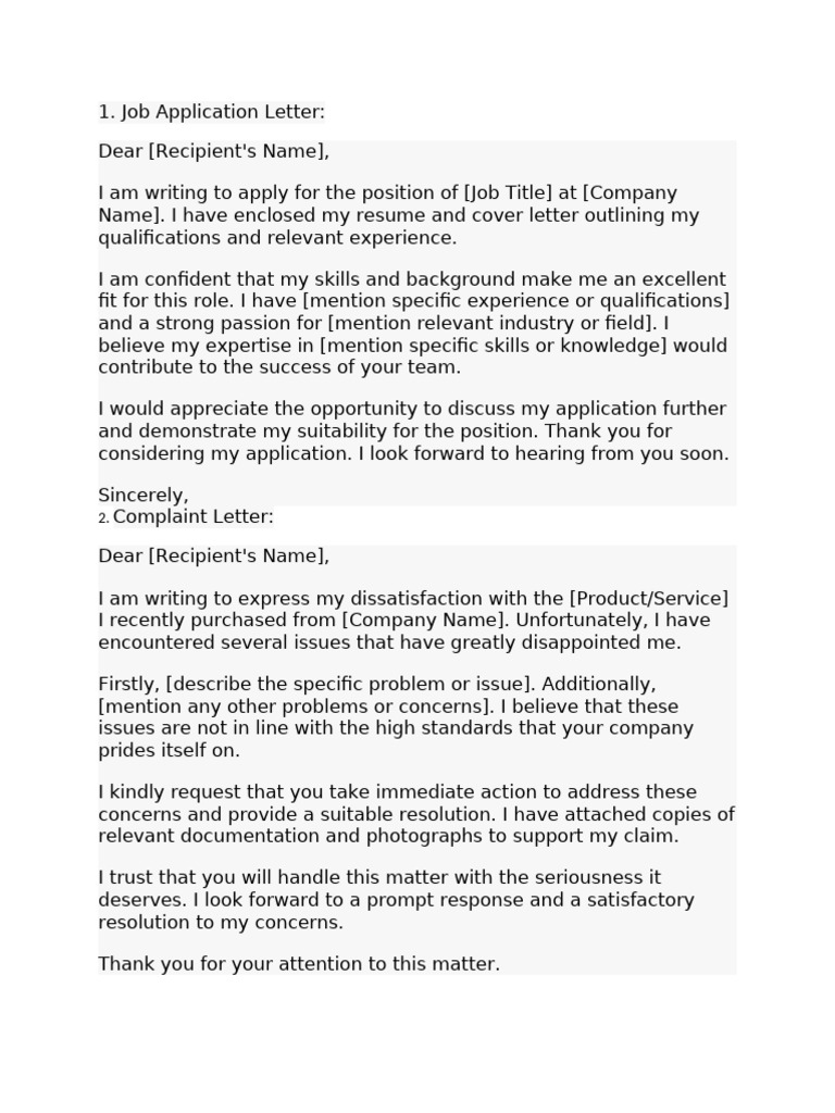 2. Complaint Letter: