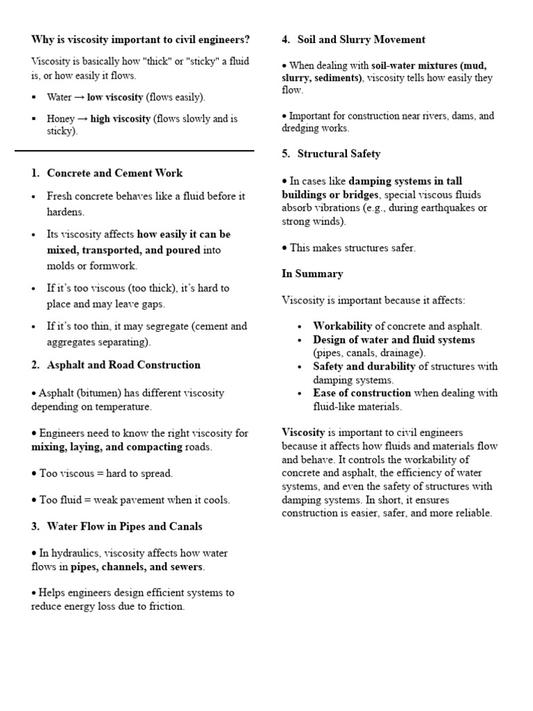 Why is viscosity important to civil engineers? 4.