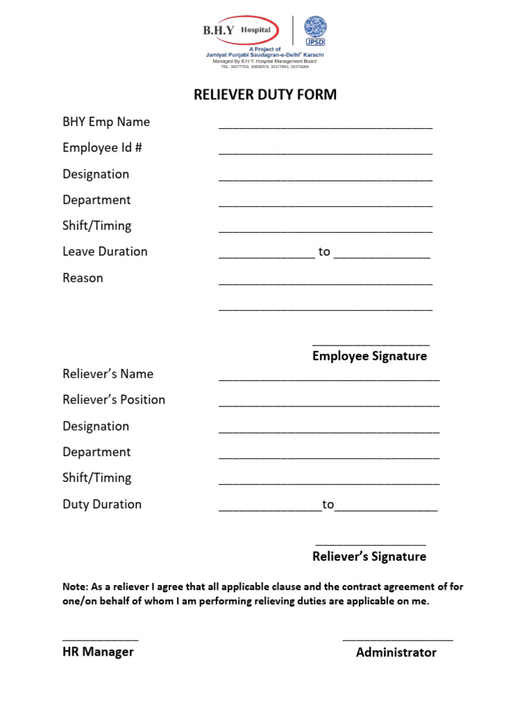 RELIEVER DUTY FORM