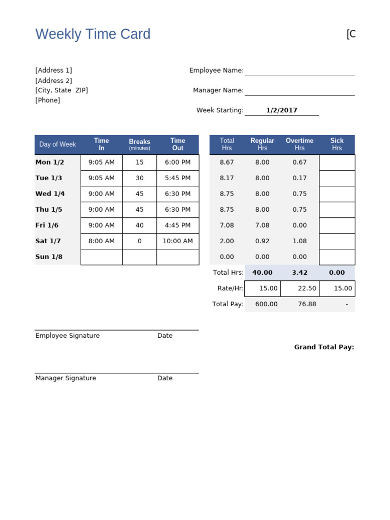 Weekly Time Card [Company Name]