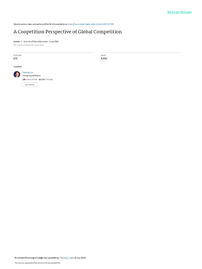 coopetition, the relationship between global rivals is a Coopetition does not deal with cases in which