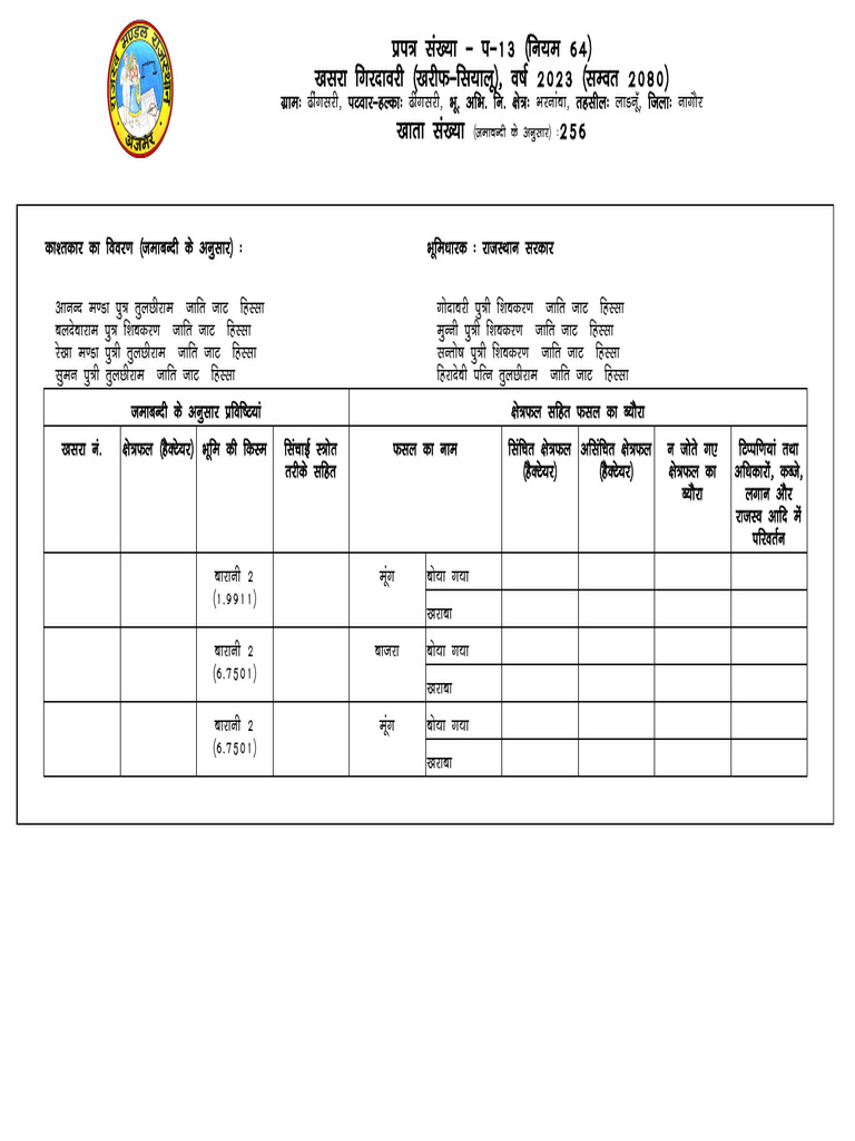 xzke% <haxljh] iVokj&gYdk% <haxljh] Hkw- vfHk- fu- {ks=% Hkjukaok] rglhy% ykMuw¡] ftyk% ukxkSj