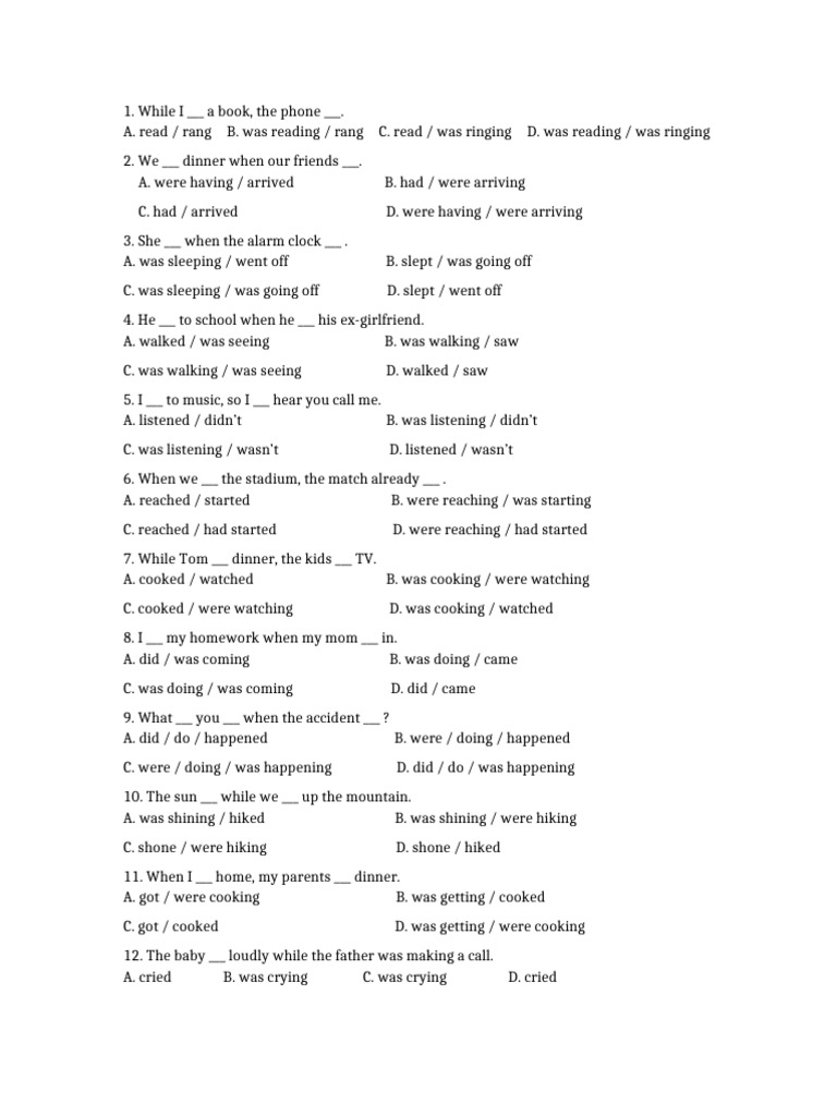 A. read / rang B. was reading / rang C. read / was ringing D. was reading / was ringing