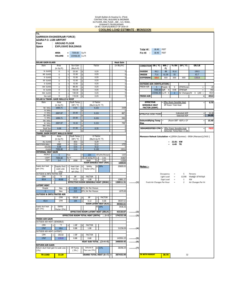 Item Area Eqvlt Temp U' Factor Monsoon Reheat Calculation = [{ERSH (Summer) - ERSH (Monsoon)}/3410 ]