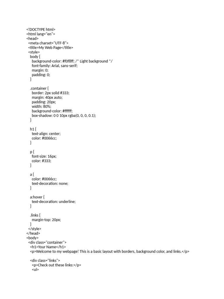 <p>Welcome to my webpage! This is a basic layout with borders, background color, and links.</p>