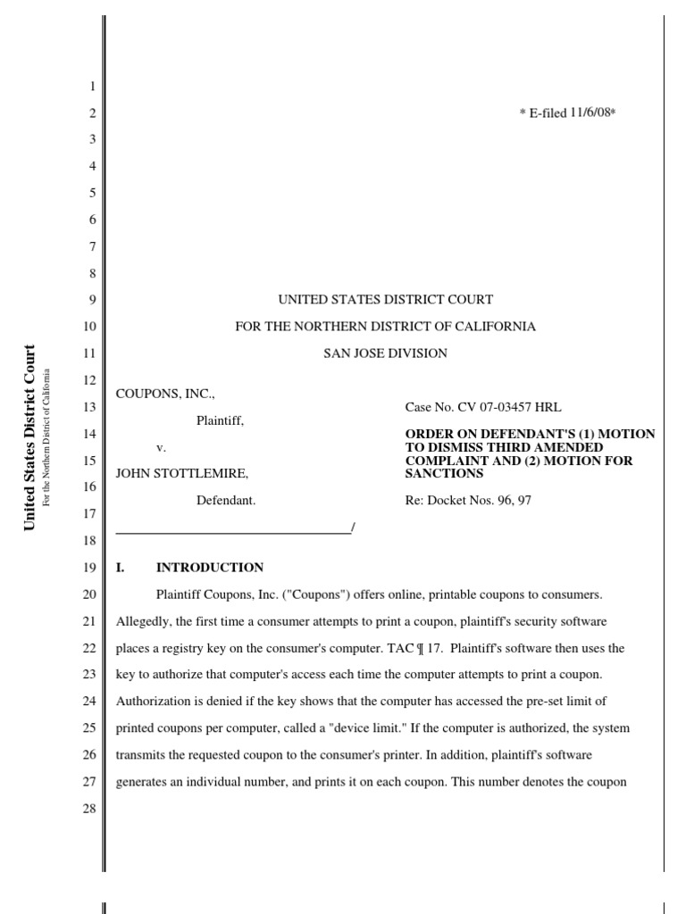 20 Plaintiff Coupons, Inc. ("Coupons") offers online, printable coupons to consumers.