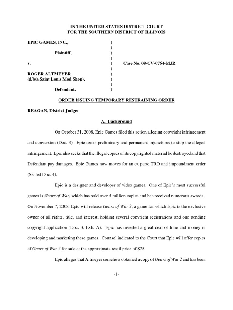 On October 31, 2008, Epic Games filed this action alleging copyright infringement