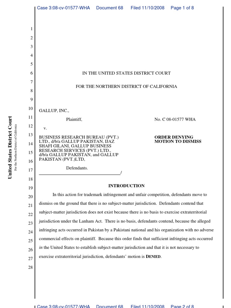 Defendants do business under the name Gallup Pakistan. Gallup Pakistan “operates as