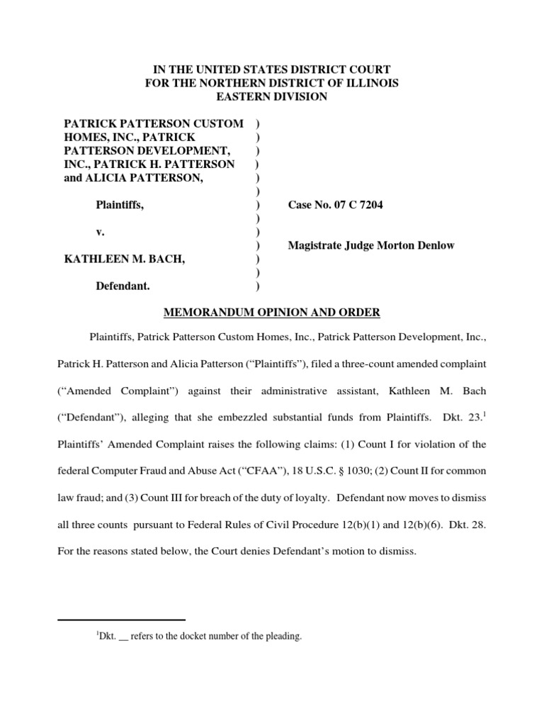 Patrick H. Patterson and Alicia Patterson (“Plaintiffs”), filed a three-count amended complaint