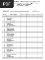 Attendance Sheet For CA4 : 2024-25