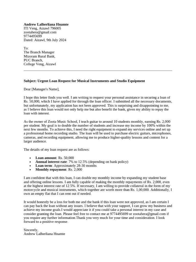 consider granting the loan. Please feel free to contact me at 9774495699 or zootahera@gmail.com if