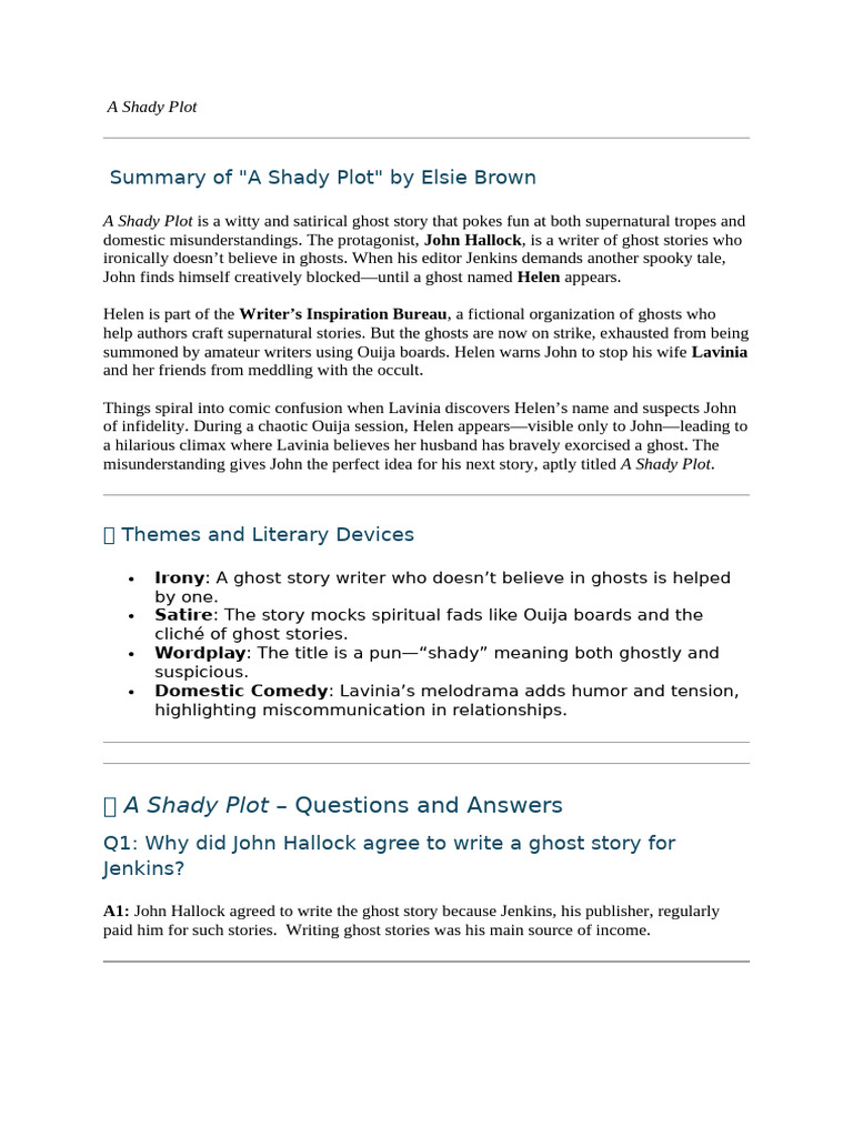 A Shady Plot is a witty and satirical ghost story that pokes fun at both supernatural tropes and