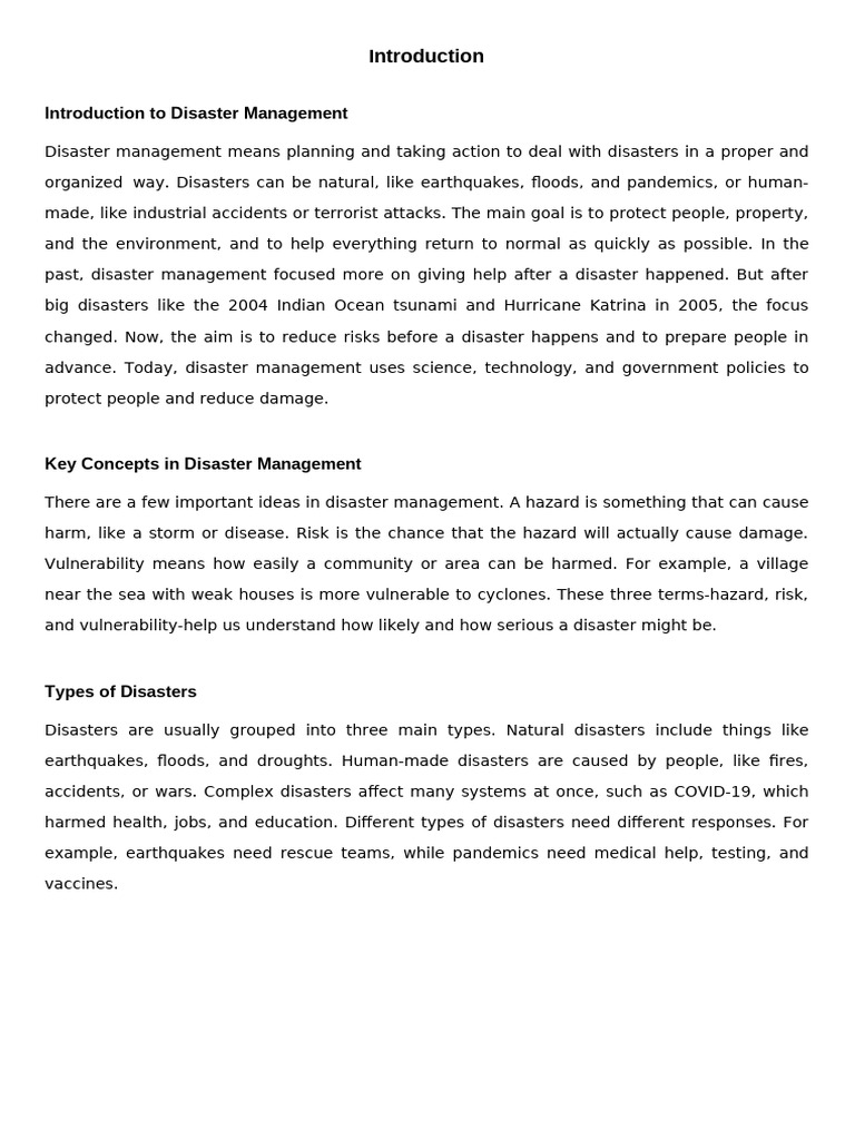 organized way. Disasters can be natural, like earthquakes, floods, and pandemics, or human-