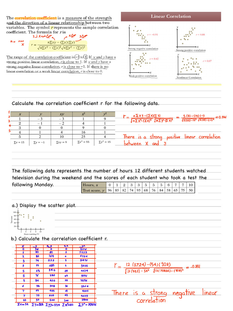 b.) Calculate the correlation coefficient r.
