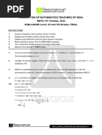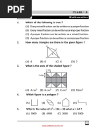 Syllabus Section I (Logical Reasoning) : Mathematical Operations, Series Completion, Arithmetical Reasoning, Problems on Cubes and Dice, Number Ranking & Time Sequence Test, Inserting Missing Character and General Reasoning Based on Prescribed Syllabus. Section II (Mathematical Reasoning): Number Systems, Polynomials, Coordinate Geometry, Linear Equations in Two Variables, Introduction to Euclids Geometry, Lines and Angles, Triangles, Quadrilaterals, Areas of Parallelograms and Triangles, Circles, Constructions, Herons Formula, Surface Areas and Volumes, Statistics, Probability. Section III (Everyday Mathematics) : The Syllabus of this section will be based on the syllabus of Mathematical Reasoning. Class 10 The actual test paper has 50 questions. Time allowed : 60 minutes. There are 3 sections: 20 questions in section I, 20 in section II and 10 in section III. Section I :Logical Reasoning, Section II : Mathematical Reasoning & Section III : Everyday Mathematics