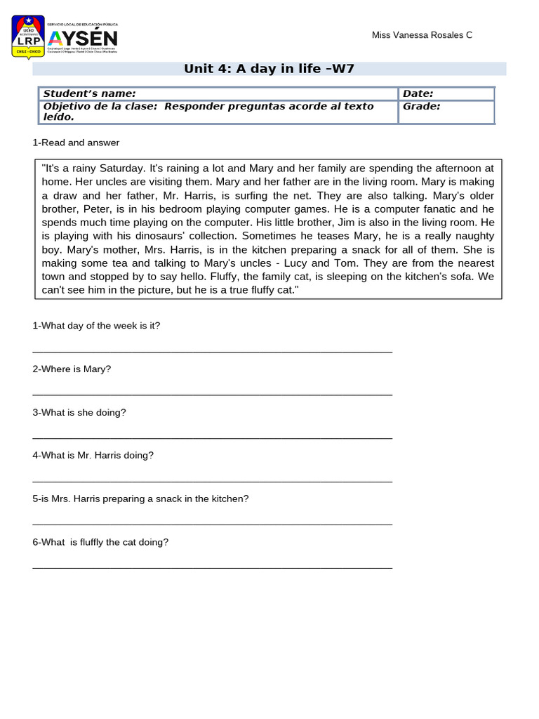 Objetivo de la clase: Responder preguntas acorde al texto Grade: