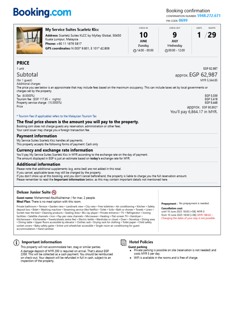 Guest name: Mohammed AbuMukheimar / for max. 2 people.
