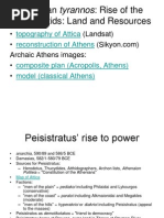 Wade-Gery, Essays in Greek History, 148-9, but more firmly and less convincingly Oliver, op. cit., who, in order to maintain not only that there was no admission of new citizens, but that none ever said that there was, has to offer an impossible meaning of uX&rTeae and an extremely unlikely one of veooM'roct. 138 The only pieces of evidence worth considering are these: i) redistribution is said to have been in the air at the time of Solon's reforms (Plut. Sot. i6. I); 2) Peisistratus' enemies confiscated his property and auctioned it while he was in exile (Hdt. VI 121. 2); 3) Peisistratus made money-grants to farmers (Ath. Pol. i6. 2); 4) when he recalled Kimon Koalemos from exile, Kimon xiTXf bdt 'r&&uro5 (Hdt. VI 103. 3); 5) Peisistratus' friend Lygdamis of Naxos did indulge in confiscation (Arist. Econ. i346b 7). It is clear that Peisistratus had the power to confiscate and it would have been surprising if he had not used it, but the positive evidence for saying so does not exist. 137 I do not wish to be understood to say that they had mercantile interests. I know of no evidence for that proposition, widely-held though it is. 138 I see no good reason to disturb the manuscript reading at Hdt. I 64. 3. For Alkmeonides, see Raubitschek, Dedications from the Athenian Akropotis, pp. 338-340, where the evidence is collected. I cannot follow him in supposing that there is any strong case for supposing Anaxileos a member of the family.