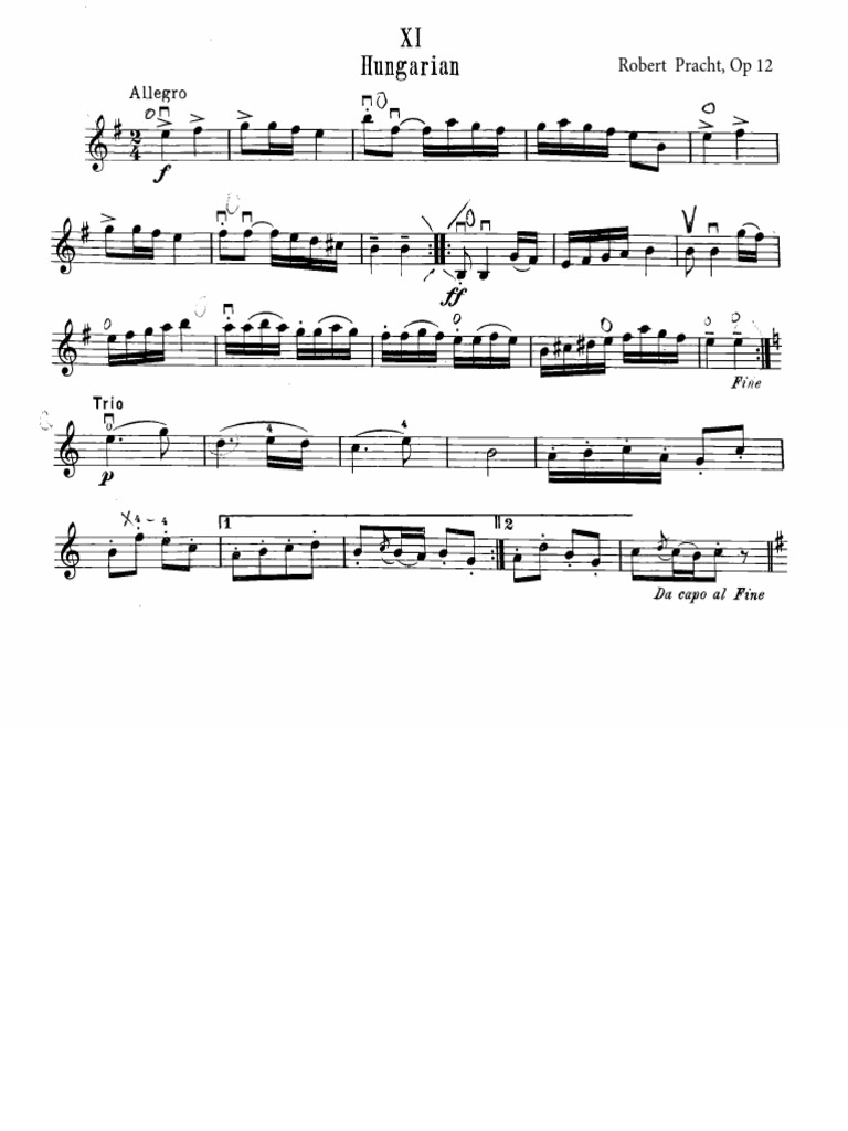The document appears to be a musical score or notation for a piece titled 'Robert Pracht, Op 12'. It includes various symbols and markings typical of sheet music. The content is not fully legible and lacks detailed information.