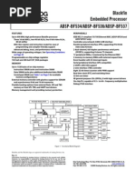 The ADSP-BF534/ADSP-BF536/ADSP-BF537 processors are members of the Blackfin family of products, incorporating the Analog Devices, Inc./Intel Micro Signal Architecture (MSA). Blackfin processors combine a dual-MAC, state-of-the-art signal processing engine, the advantages of a clean, orthogonal RISC-like microprocessor instruction set, and single-instruction, multiple-data (SIMD) multimedia capabilities into a single instruction-set architecture. The ADSP-BF534/ADSP-BF536/ADSP-BF537 processors are completely code and pin compatible. They differ only with respect to their performance, on-chip memory, and presence of the Ethernet MAC module. Specific performance, memory, and feature configurations are shown in Table 1. Table 1. Processor Comparison