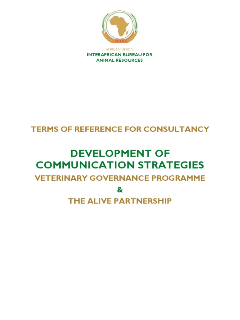 Applications should be submitted to the Director AU-IBAR. Kenindia Business Park, Museum Hill, Westlands Road, PO Box 30786-00100 Nairobi, Kenya or email: applications@[Link] with copy to hro@[Link] clearly indicating in the subject line Development of Communication Strategies for Veterinary Governance Programme and the Alive Partnership by the 18th April 2012. AU-IBAR sincerely thanks all applicants for their interest in this opportunity and hereby notifies you that only candidates shortlisted will be contacted.