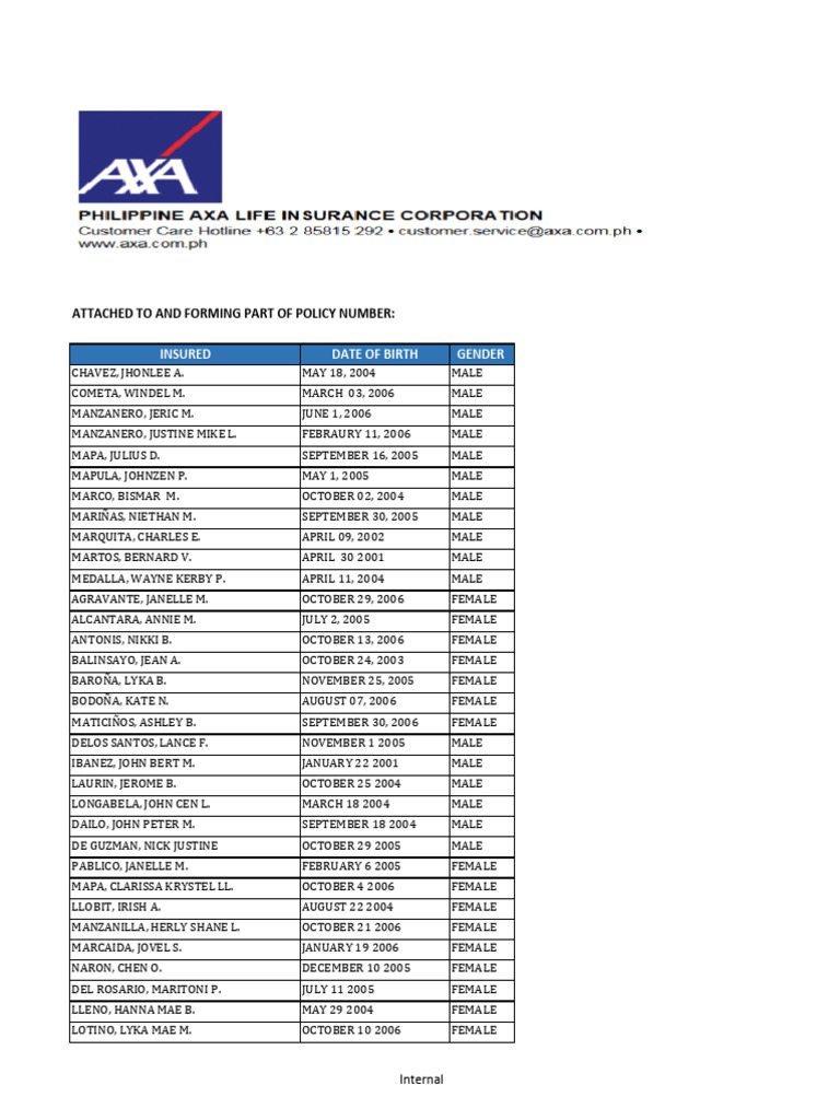 LUZON, ZAIRA JOYCE L. JANUARY 02, 2006 FEMALE