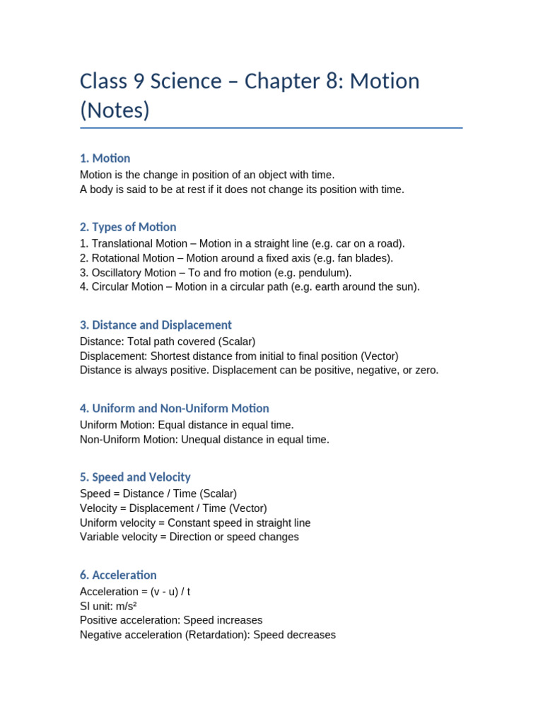 Class 9 Science – Chapter 8: Motion