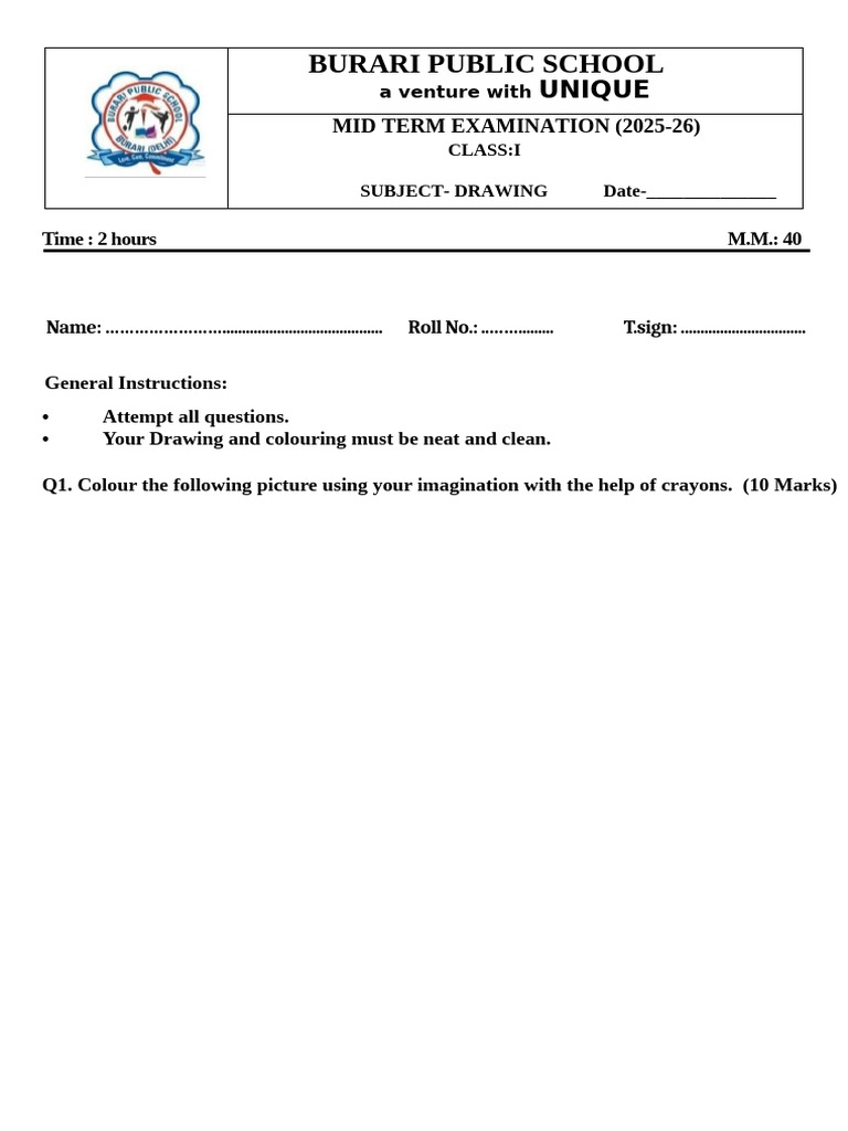 Q1. Colour the following picture using your imagination with the help of crayons. (10 Marks)